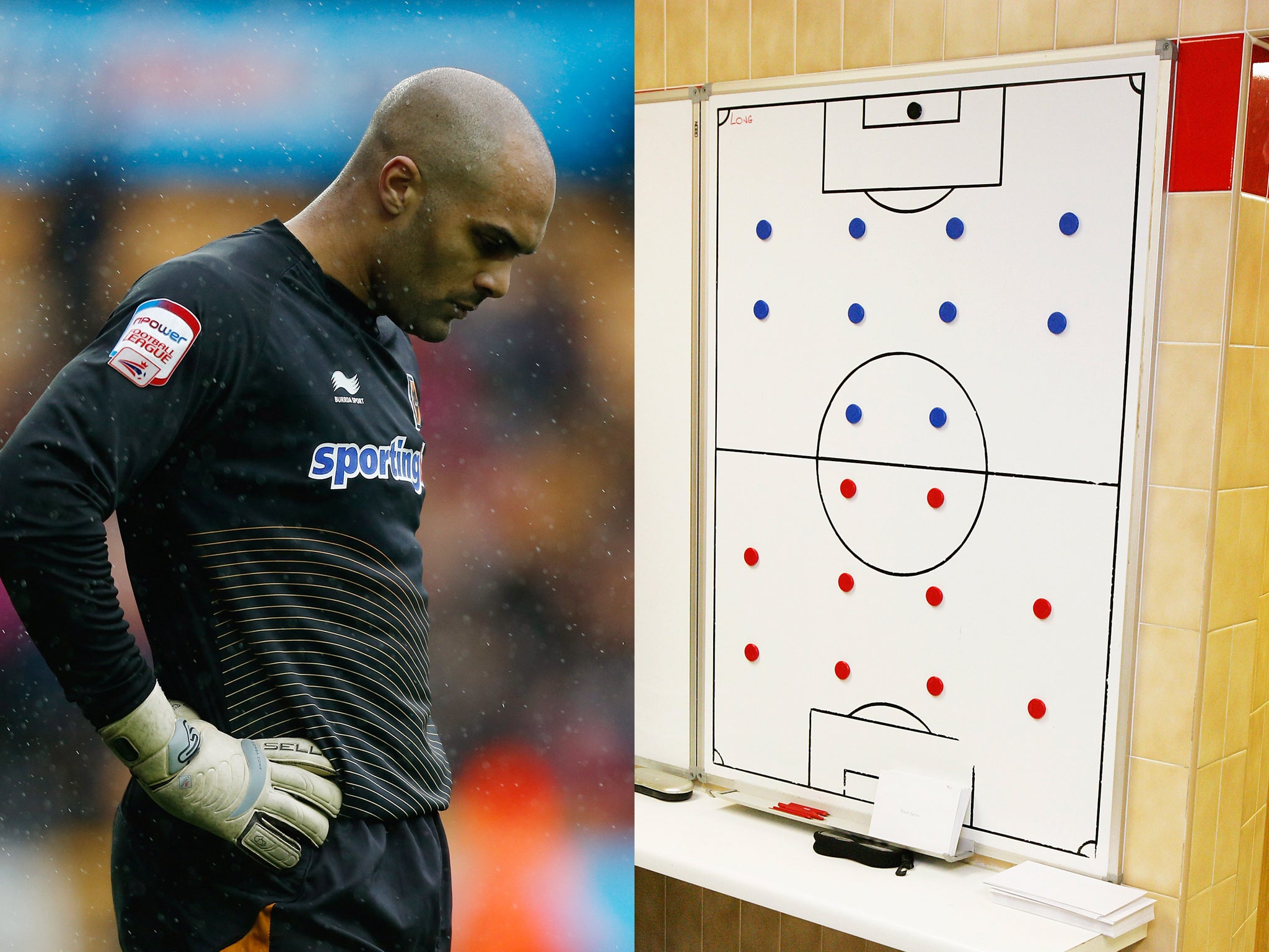 Wolves goalkeeper Carl Ikeme suffered a freak injury after punching a dressing room tactics board.