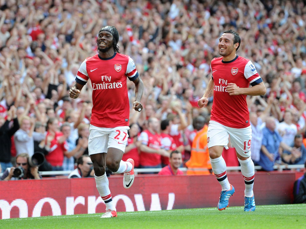 Then Yoshida stepped out at the wrong time allowing Mikel Arteta to lift the ball over his head for Gervinho to run on to. The Ivorian thumped his shot inside Kelvin Davis' near post. Two minutes later Gervinho was marginally more alert than Jason Puncheon in midfield and pinched possession. He fed Gibbs, whose cross was deflected in off Clyne.