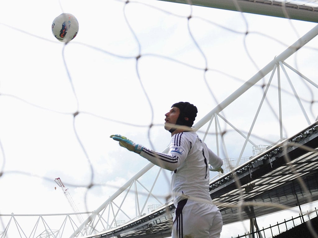 Against Barcelona last Wednesday, when the visitors had 15 shots on target to the home side's two, Alexis Sanchez chipped Petr Cech early on but hit the bar. Just before half-time Cesc Fabregas beat the goalkeeper but the shot was cleared off the line by Ashley Cole, deflecting the ball against a post. In added time the Shed End breathed again as Pedro's shot rebounded from a post in front of them.