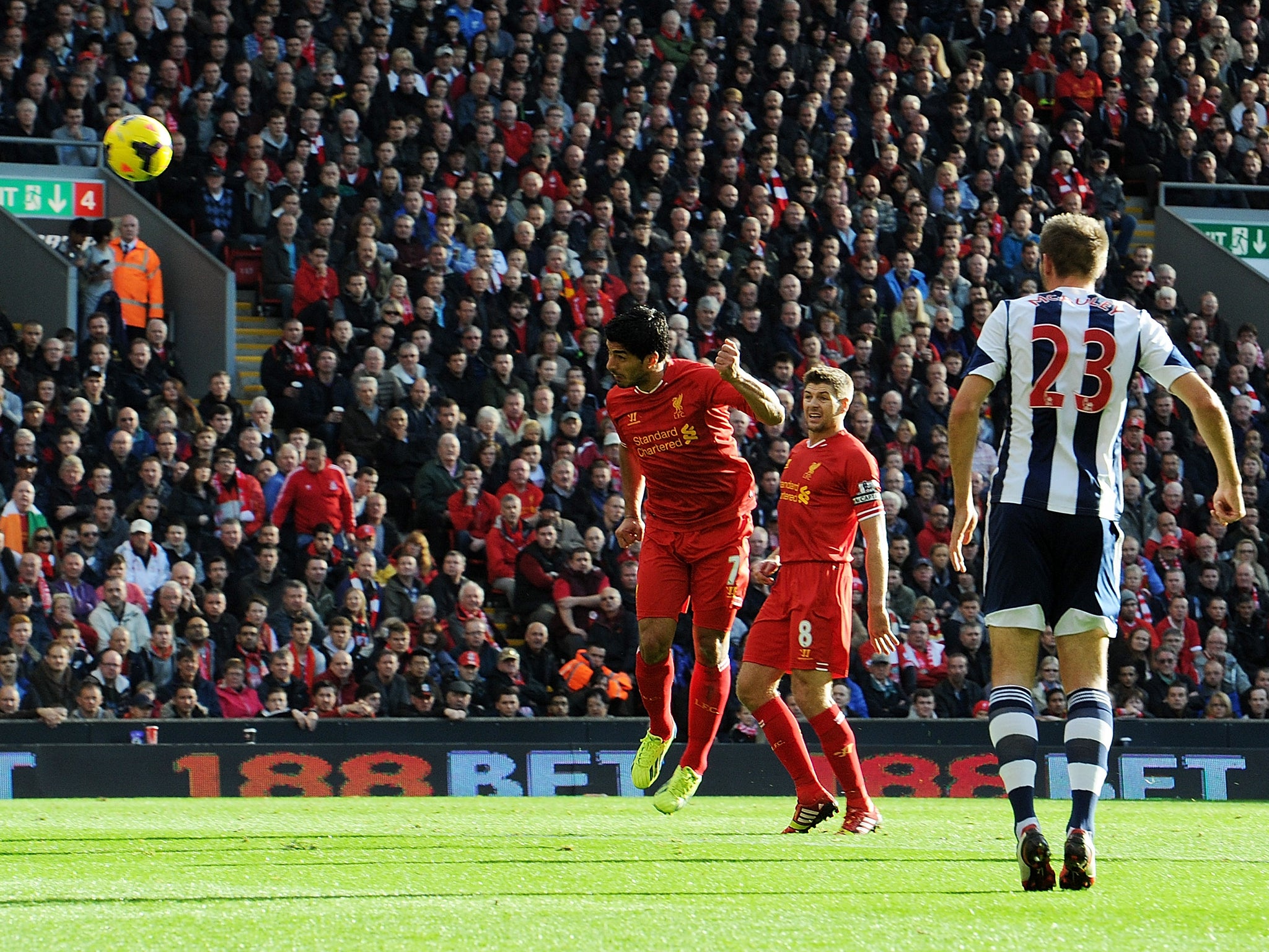 SportFootballPremier LeagueLiverpool 4 West Brom 1: The Premier League match in picturesThe best images from this Premier League match at AnfieldSaturday 26 October 2013 23:29 BSTBookmarkCommentsGo to commentsBookmark popoverRemoved from bookmarksClose popoverLiverpool 4 West Brom 1: The Premier League match in picturesShow all 7Check out the best images by clicking 'VIEW GALLERY' above.More aboutLiverpool FCWest Bromwich AlbionJoin our commenting forumJoin thought-provoking conversations, follow other Independent readers and see their repliesComments