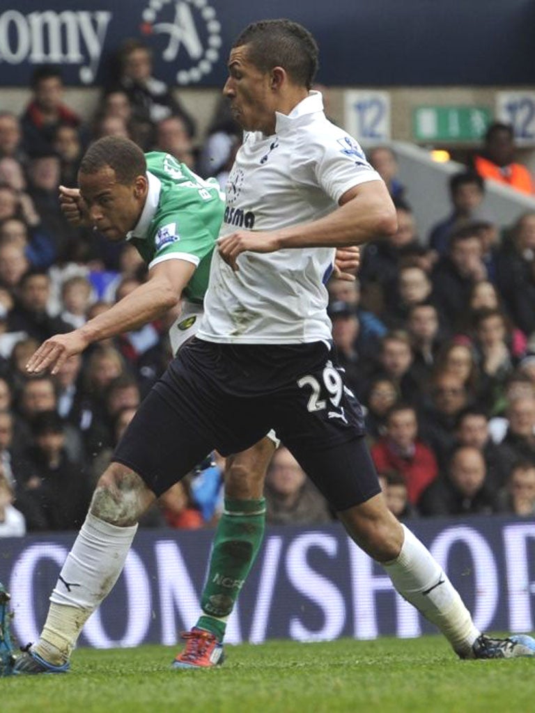 It was clear from the start that the Spurs defence was uncomfortable with Norwich's physical threat. "We couldn't handle them," Redknapp admitted afterwards. "They worked their socks off." A direct run inside from Anthony Pilkington brought the first goal, as he beat Younes Kaboul and King before Kyle Walker's hurried clearance broke back to him, presenting a simple finish.