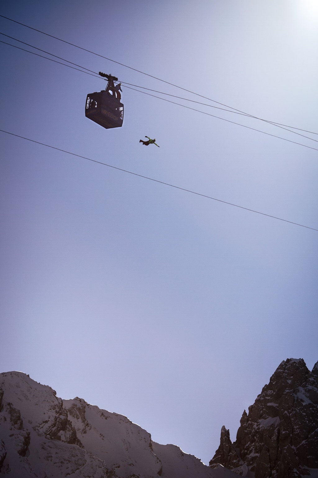 Bored of the 2014 Winter Olympics? Try watching two base jumpers leap off a moving cable car 2,000ft up in the Austrian mountains