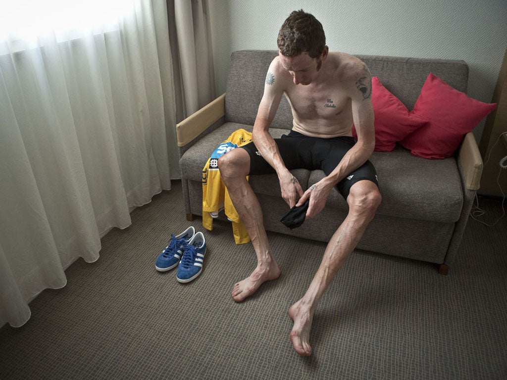 When the riders reach the hotels – which can be up to two or three hours away in the worst circumstances – the recovery process continues, with more food – often muesli or cereals – then a 45-minute massage to ease muscles and also allow riders to unwind. This is followed by the main meal of the day. Even if they call their families or watch TV afterwards, nine times out of 10 they will be lying on a bed as they do it. By 9.30 or 10pm they will normally be asleep. After which it all starts all over again.