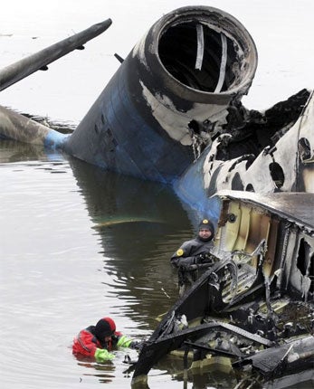 It is not yet clear what caused the Yak-42 to crash. Russian television aired gruesome animation recreating the probable lead-up to the accident based on eyewitness accounts and sources at the airport. The plane failed to take off in time, travelling 400 metres on grass beyond the end of the runway on its rear wheels, with nose in the air. Unable to get the requisite lift, the plane crashed into a communications tower before veering to the left and plunging into the ground on the banks of the Volga River, where it burst into flames. Throughout the day yesterday, divers continued to drag bodies from the river, some of them still belted into their aeroplane seats.