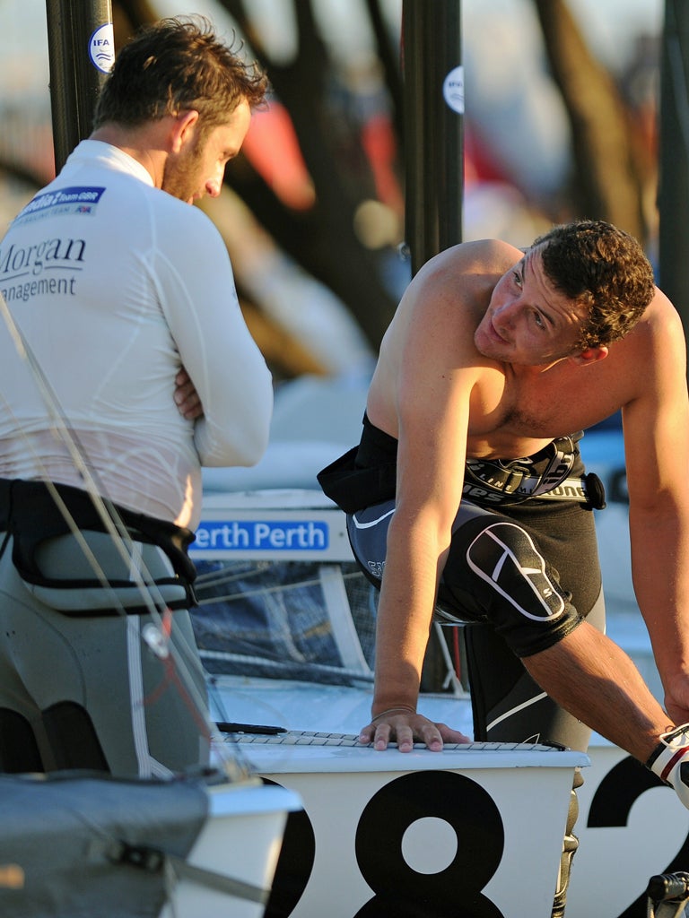 After finishing second yesterday he sailed across to the TV boat, jumped from his craft, swam to the media vessel and climbed aboard. He remonstrated vigorously with the boat's driverand then had a physical altercation with the photographer, whom he appeared to grab and throw aside before diving into the water and swimming back to his dinghy.