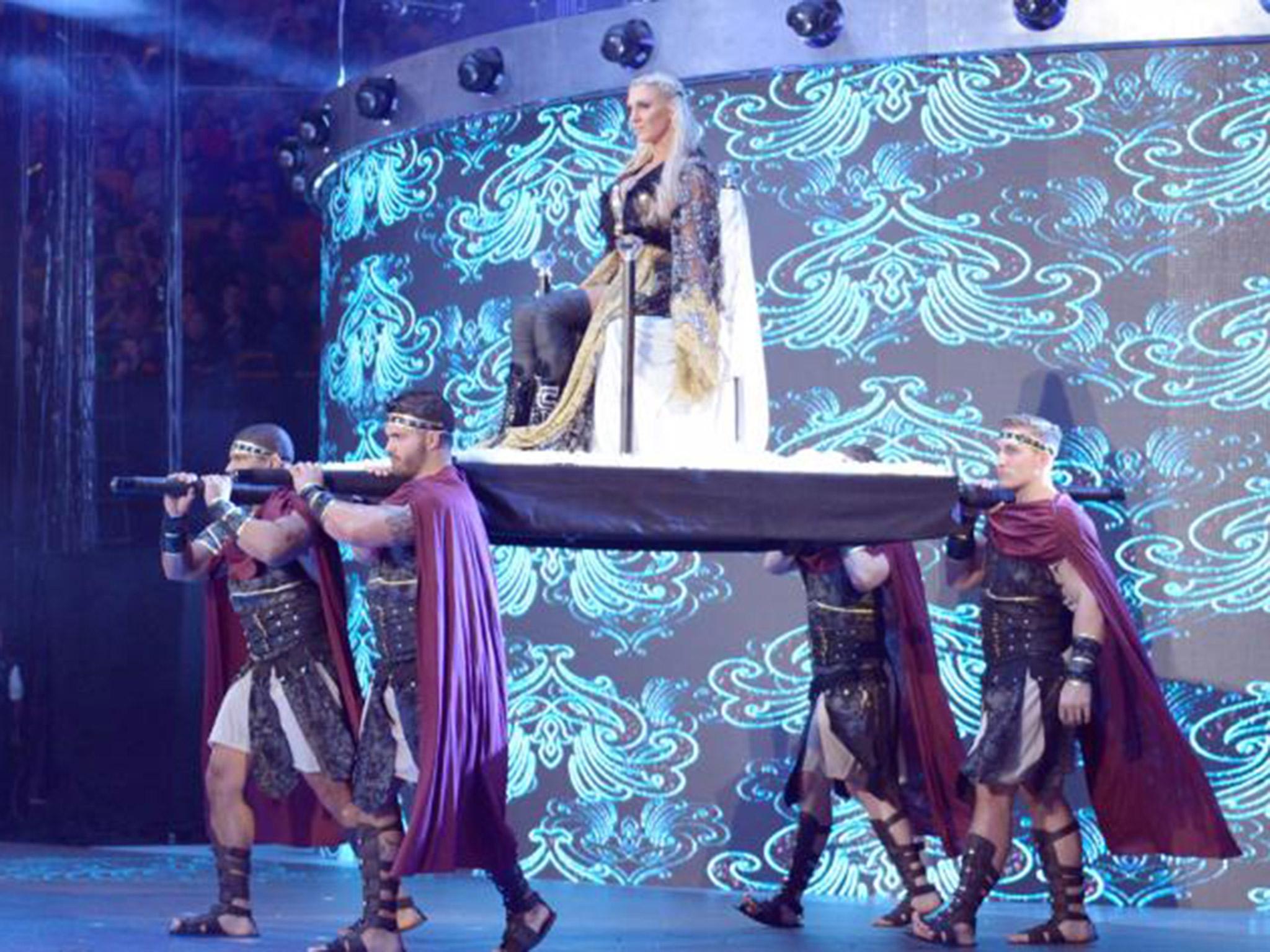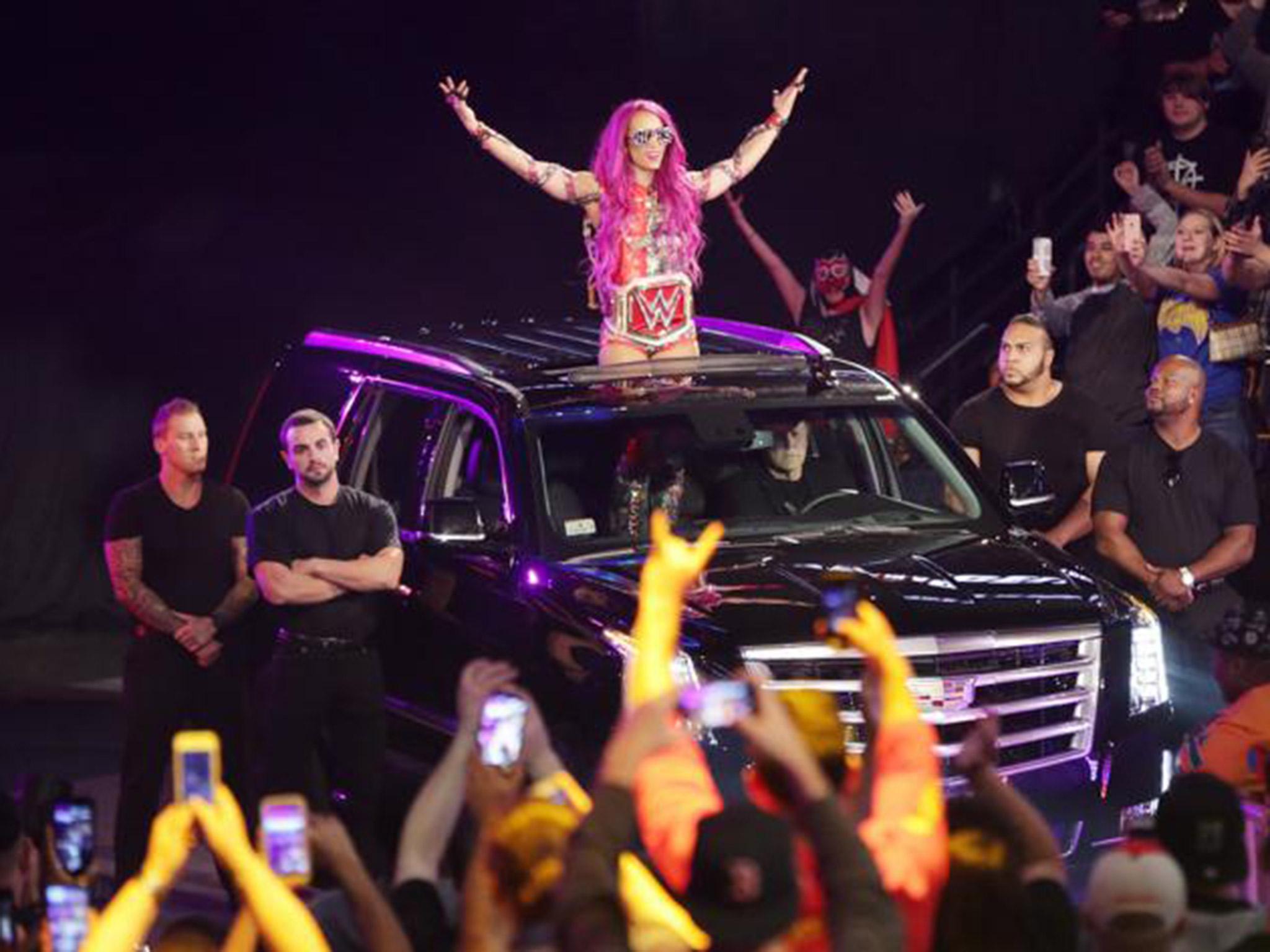 Four men carried Charlotte to the ring on a palanquin. Sasha Banks rode in atop an Escalade surrounded by security guards.