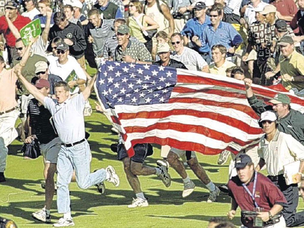 So Europe it was, although for a while the hammerings continued, and the American golfing public maintained their indifference. "In 1979 at Greenbrier, they didn't even know it was called the Ryder Cup," Nick Faldo told The Independent last week. "They called it the Ryder Cup international matches. And if you look at the footage of those days, it was nothing like what it is now, with golf courses chosen for their amphitheatre effect, and that incredible partisanship, which crossed the line at Kiawah [in 1991, and at Brookline]."