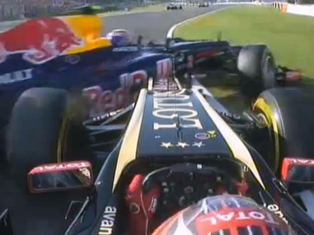 After Webber had described him as "a first-lap nutcase," a repentant Grosjean said: "Ever since I came back in Singapore my priority has been to be very cautious at the start, and I was watching Sergio [Perez] on my left to make sure there was no contact with him. There was quite a big speed difference between me and Mark as I came into the first corner which caught me by surprise, and we collided. It was a stupid mistake. Mark came to see me after the race and was obviously not happy, but I apologised. We have to look ahead to Korea and a chance to make amends."