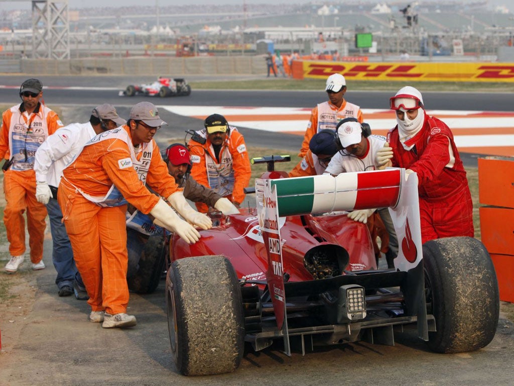 Massa was given a drive-through penalty by the stewards and later crashed out when, once again, he broke the front suspension as he had in qualifying after going too aggressively over a kerb. Afterwards, he appeared unrepentant about the incident with Hamilton. "I can only say I do not share the opinion of the stewards," he said. "I stayed on the ideal line, braking on the limit. What else could I do? It's the umpteenth time that Hamilton runs into me this year and it seems it's some sort of fatal attraction. In the past, I tried to talk to him but he did not seem to be interested in doing so."