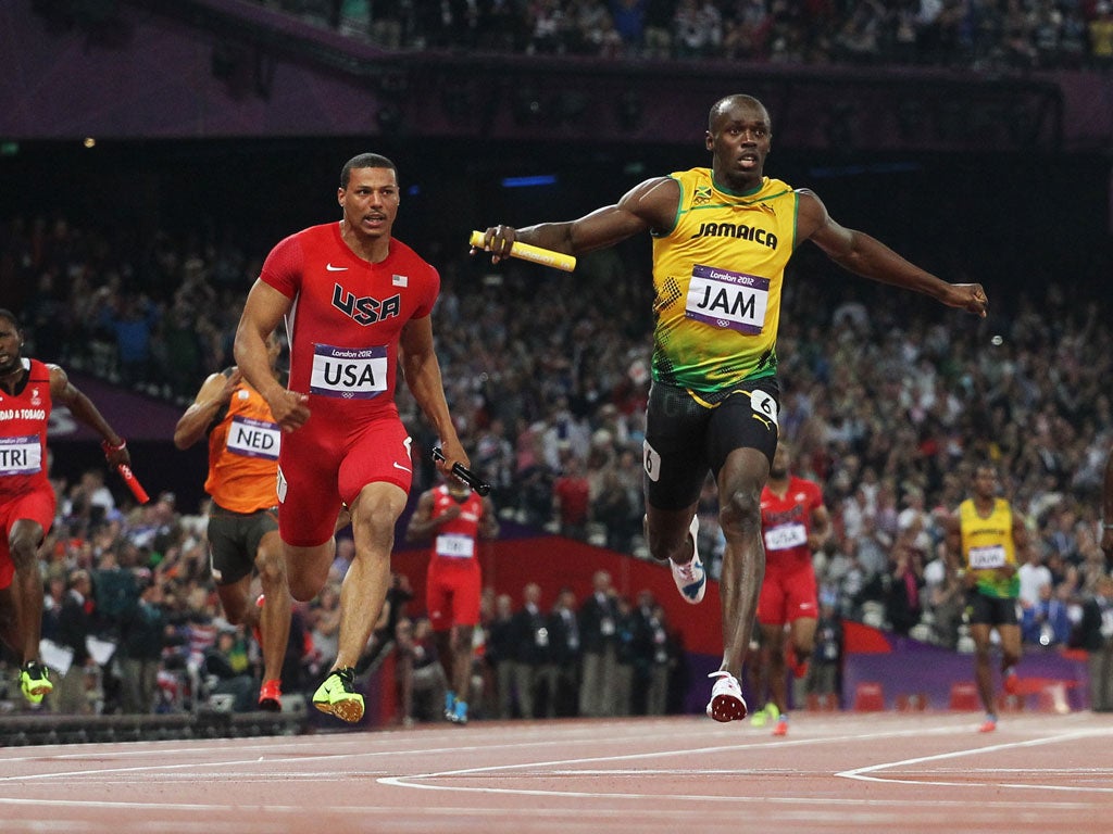 Oh yes. It had to be. Usain Bolt galloping down the home straight at a record lick. Gold would never be sufficient to substantiate this legend. He had to take down the clock for good measure. Bolt was not on his own, of course, but when he collected the baton from Yohan Blake at the end of the third leg he was neck and neck with Ryan Bailey of the United States.