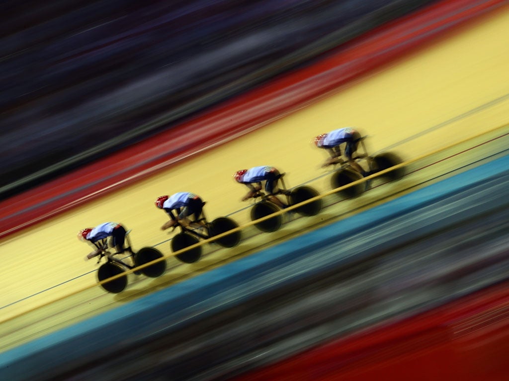 Spurred on by multiple World and Olympic champion Bradley Wiggins in the velodrome crowd - himself responsible for Britain’s cycling gold rush in Wednesday’s individual time trial and also part of the Beijing team pursuit squad four years ago - Great Britain clocked a time of 3 minutes 51.659 seconds, shaving almost a second off their own World Record time and nearly three seconds faster than silver medallists Australia. A few minutes earlier, New Zealand had seen off Russia for bronze.