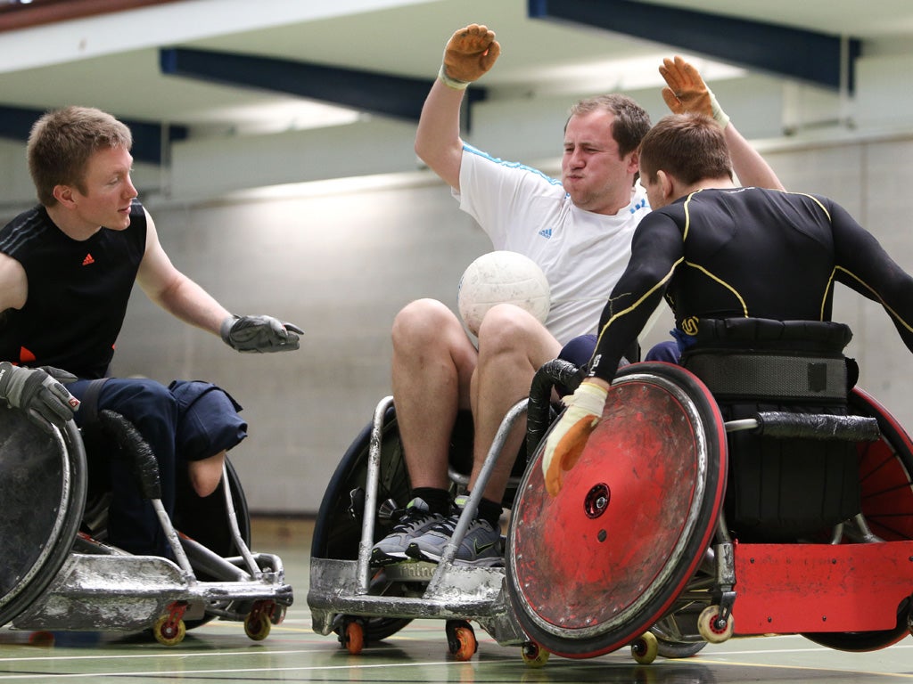 Think wheelchair basketball, but without the baskets. The four players on each side must merely propel the ball from one end of the court to the other, but with one crucial difference: attempted murder.