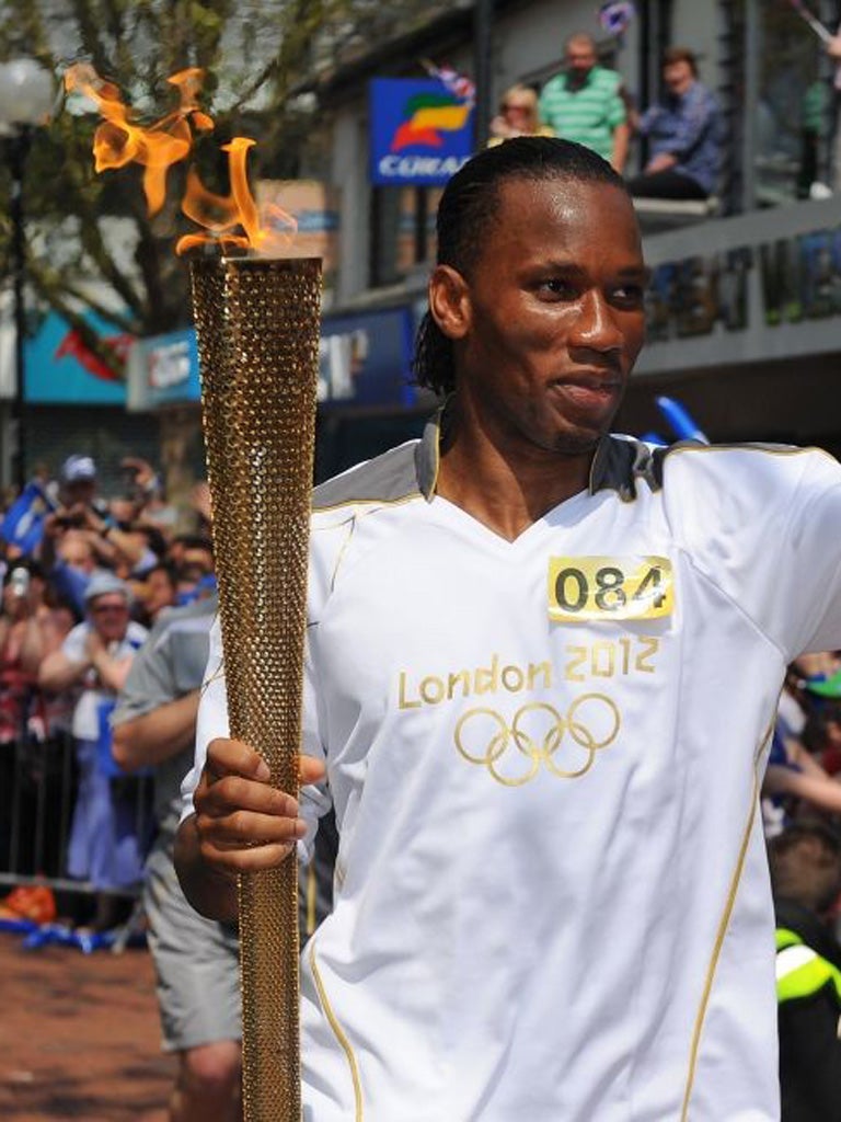 Torchbearer No 109 in the Somerset town of Taunton on Monday was Black Eyed Peas singer and presenter of The Voice, Will.i.am. The American singer caused a stir when it occurred to spectators that he had little connection with Britain. Chelsea's Ivorian striker Didier Drogba also carried the flame four days after scoring the penalty that won the Champions League.