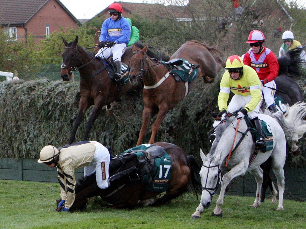 Once again the field was yesterday diverted round a fence on the second circuit while a stricken participant was tended to by medics. This time round it was a jockey – but it proved a valid portent of the race's attrition. For all the precautions taken since the macabre drama of 12 months ago, the loss of two more horses – According To Pete, and Synchronised – reiterated that this spectacle owes its defining character to some degree of danger.
