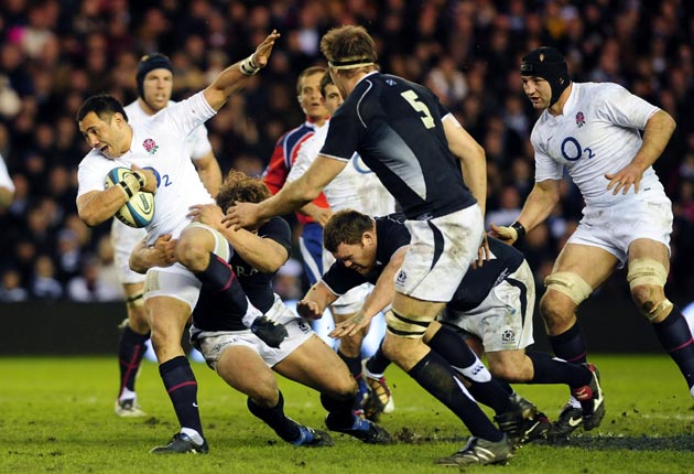 Ugo Monye's chances of making that date must be close to zero. The wing finished second-best in a collision with Brown, left the field in a neck brace and was taken to hospital for an X-ray before being discharged into the care of the England medical team. Jonny Wilkinson also took a heavy blow – the contest, as ferocious as it was unsophisticated, took a heavy toll on its participants – and while he may be declared fit for the trip across the water, England were more dangerous with Flood loading the bullets for the outside backs, of whom Foden looked the most lively.