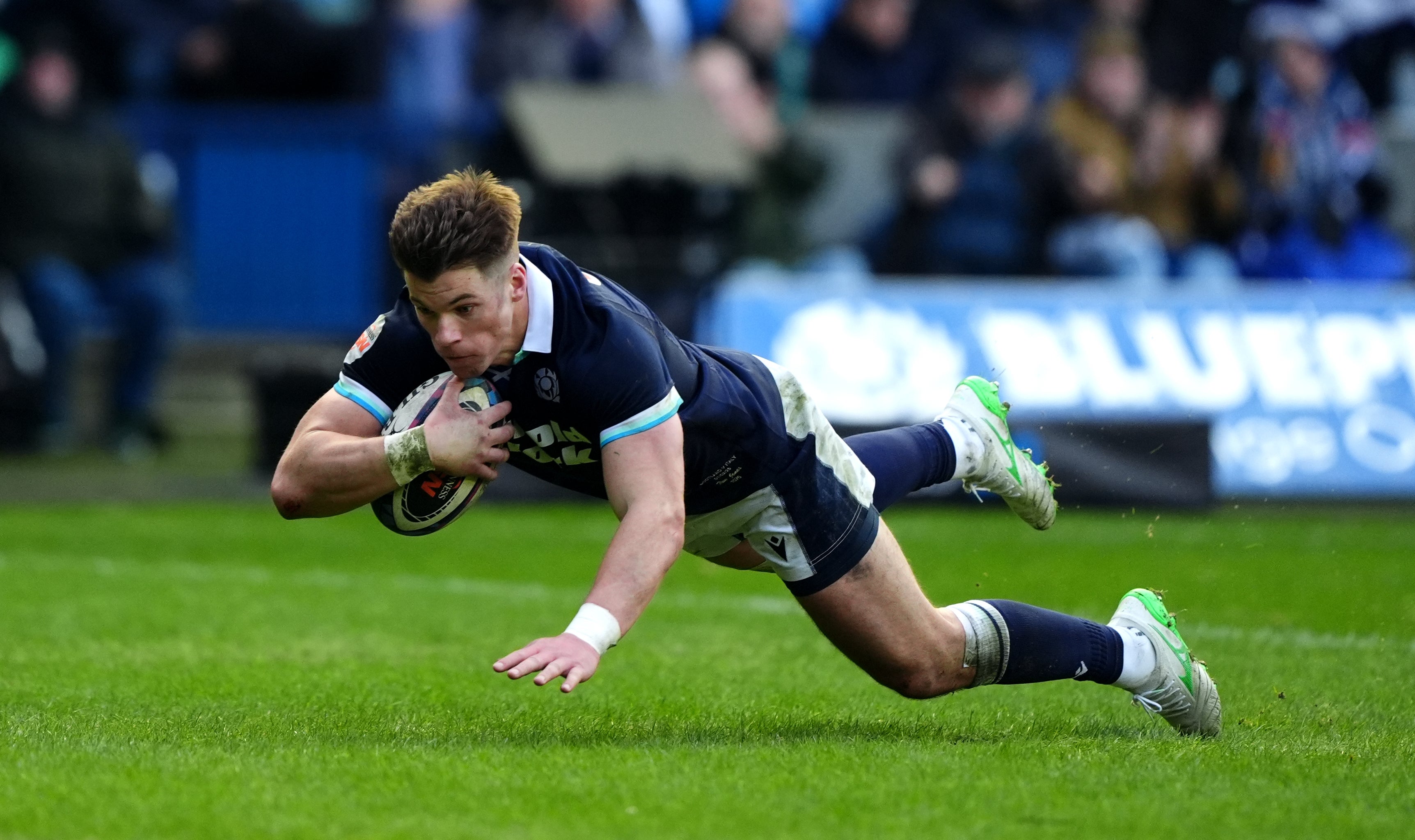 He’s out on the right wing, beats Garbisi one on one and then powers between two more tacklers and stretches out for the try. Russell’s conversion misses but Scotland back in control here