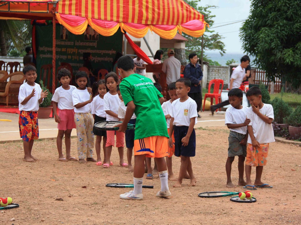 Six of Cambodia's tennis squad live at the new national training centre. Lessons in English are given three times a week. A Cuban coach, Braen Aneiros, works with the top players, while 12 coaches provide free tennis lessons for 3,000 children at schools and orphanages.