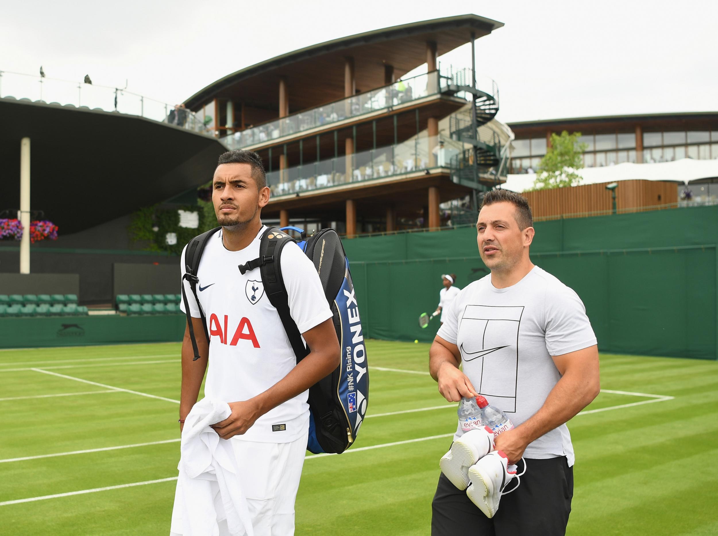 Nick Kyrgios turned heads at Wimbledon on Saturday by showing off the new Tottenham shirt at the All England Club.