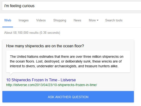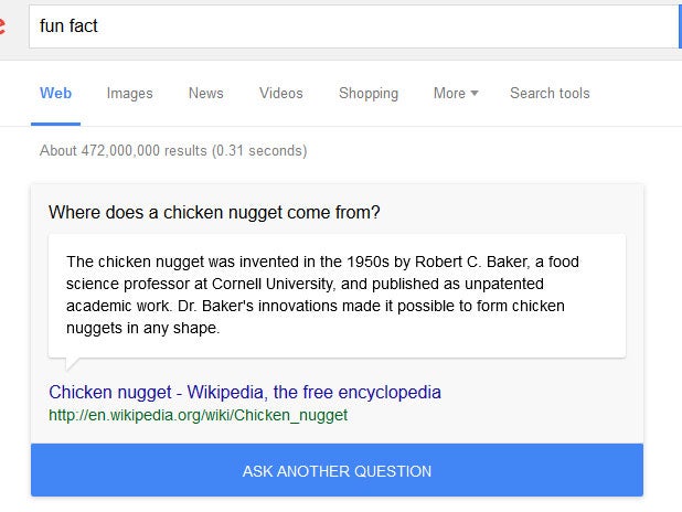 If you’re even more curious to learn some new facts, you can also hit the “ask another question” button to unleash an endless list of random trifles.