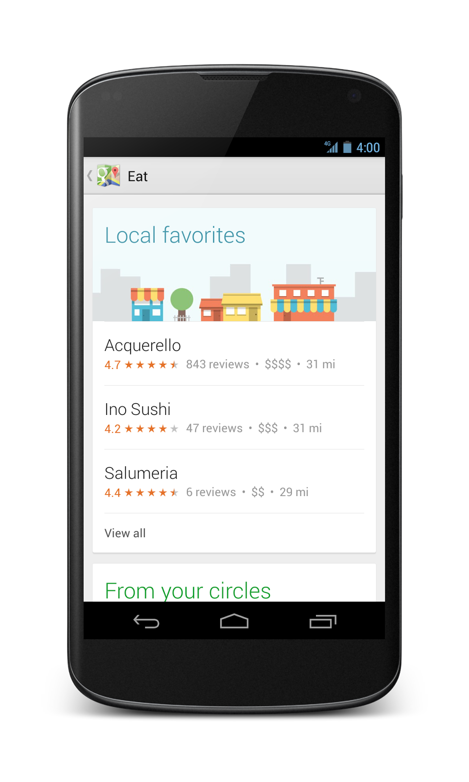 New features include an Explore function - an extra-swipeable interface that lets you "browse and discover new places without typing"; Enhanced Navigation (probably not deserving of the capitals) that takes account of traffic info to offer alternate routes - no Waze integration as of yet however; and increased visibility for offers and reviews (the latter now presented in a 5 star system powered by 2012 acquisition Zagat).