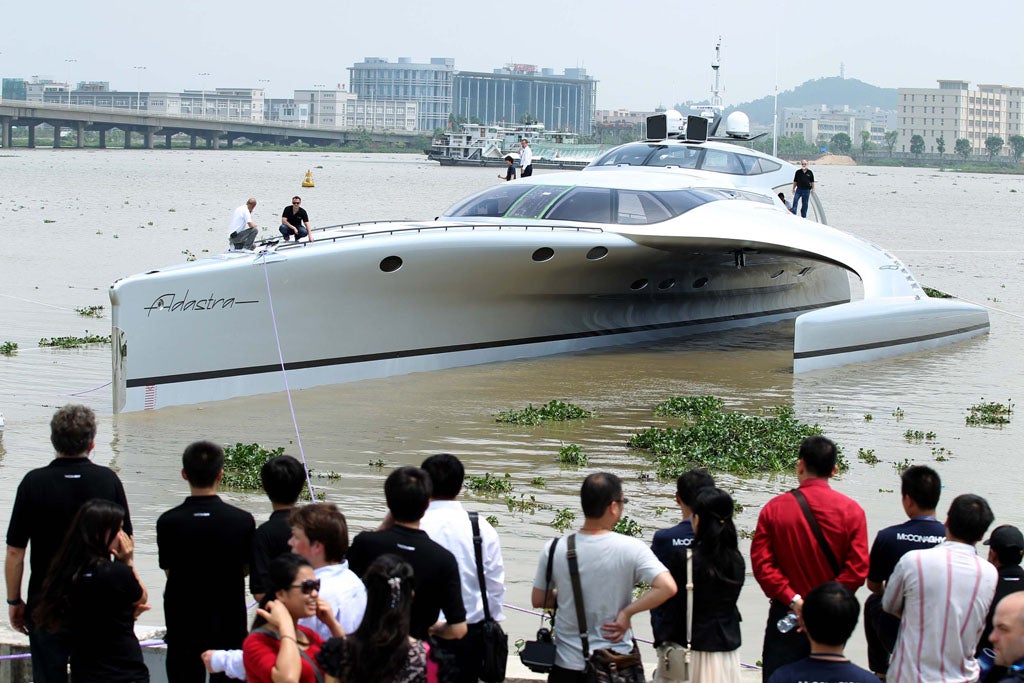 Costing $15m, the new trimaran yacht, the Adastra, is 42.5 metres long, 16 metres wide and weighs 52 tons. The ultimate in luxury toys, she can be controlled within a 50-metre range using an iPad.