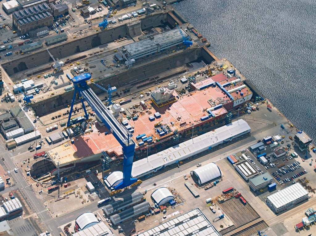 New aerial pictures have been released by the Aircraft Carrier Alliance of the HMS Queen Elizabeth, an aircraft carrier that will be the largest ship ever commissioned by the Royal Navy.