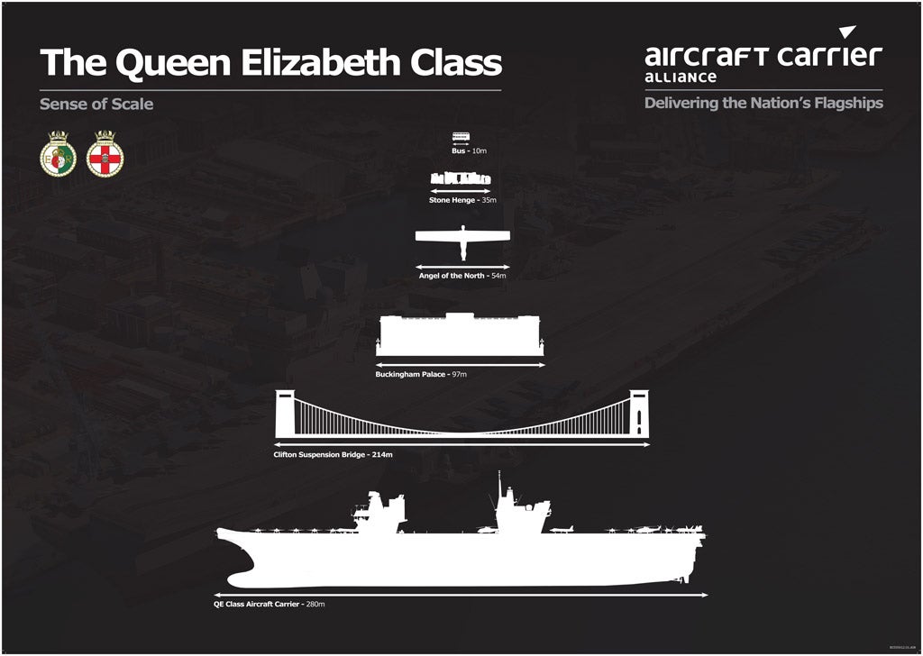 It is one of a pair of carriers being built by the Aircraft Carrier Alliance - a consortium of manufacturers including BAE Systems, Thales UK, Babcock, and the UK Ministry of Defence. With a price-tag of £5.5bn the HMS Queen Elizabeth (and its twin the HMS Prince of Wales) will be the second biggest engineering product in the UK (the Olympics took the top spot).