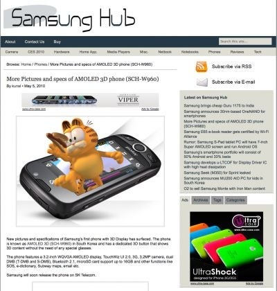 Images and specifications of Samsung's first 3D-enabled phone have been leaked on the internet. The phone, known as the AMOLED 3D (SCH-W960), is a new type of device that can display content in 3D without the use of special glasses.