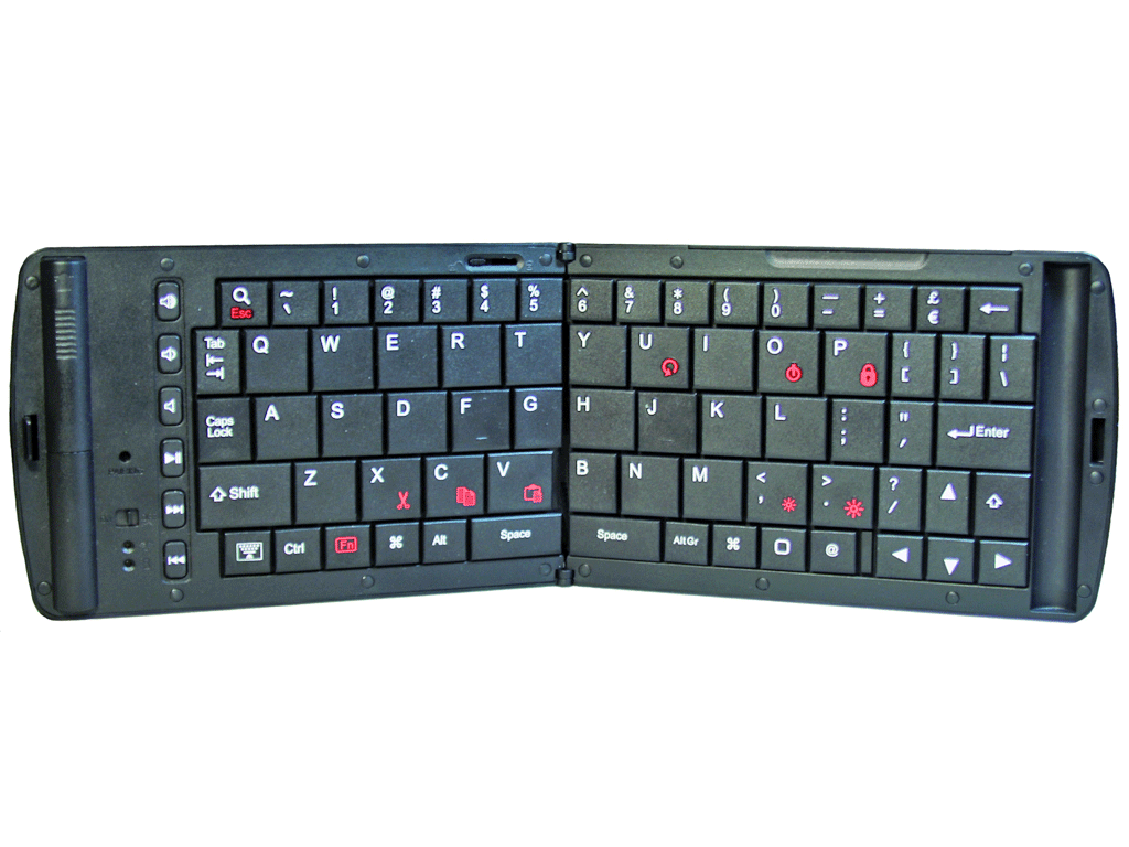 Bluetooth full-size folding keyboard boasts six media controls: play/pause, volume up/ down/mute, previous/next track.