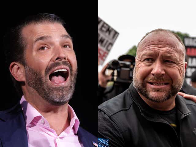Alex Jones, who once said the Sandy Hook massacre of 20 children was faked, has said the Republican candidate has taken talking points directly from him