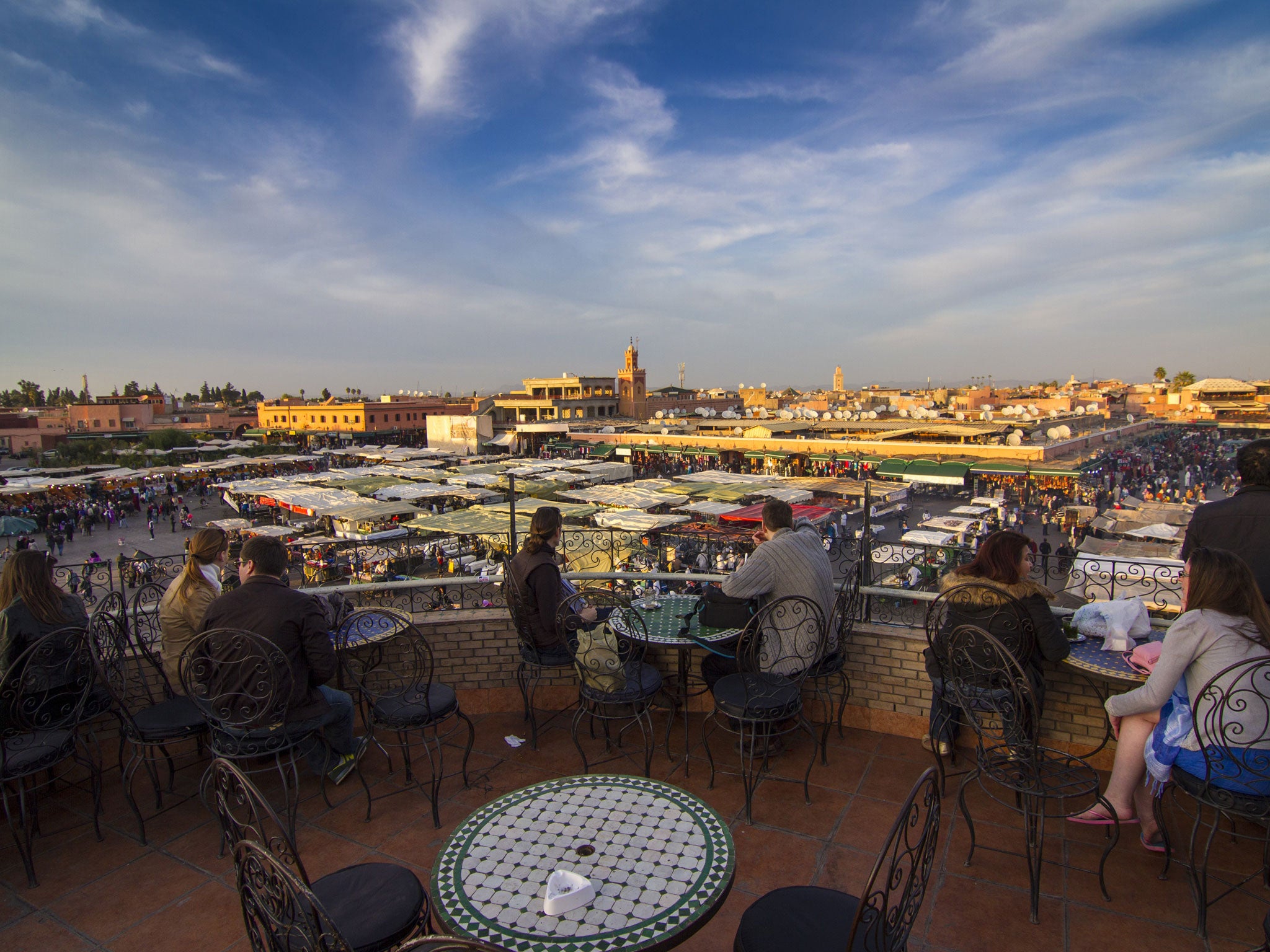 The drummers strike up a throbbing rhythm; thick blue smoke blows across the square from the food stands; another stand is piled high with brightly coloured Beats headsets by Dr Dre; the snake-charmers' instruments wail; a gleaming red Ferrari pushes its way through the crowds and the muezzin's call to prayer crackles from the loudspeakers of dozens of minarets. All life is here and all the centuries of the past thousand years.