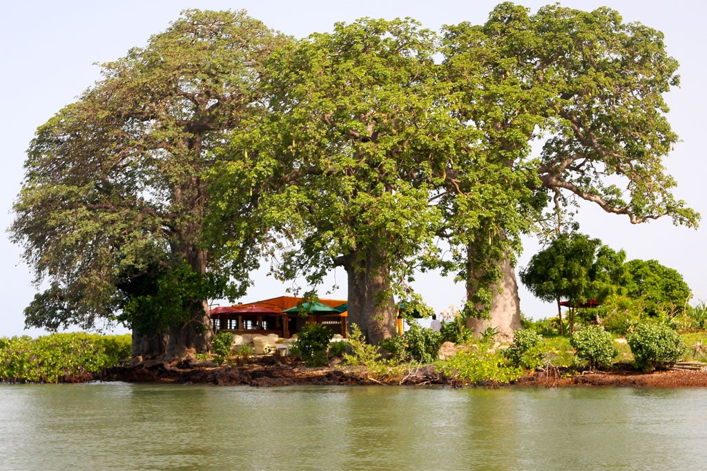 How short a distance you have to travel, here, to be off the beaten track. I was staying just a couple of miles away, at Sitanunku Lodge, a new and secluded retreat on the northern bank of the Gambia River. toubabs are frequent visitors here. They come to enjoy the view from the plunge pool out over the river, five miles wide at the mouth; to drink cocktails in the intimate bar; to eat perfectly cooked butterfish with bitter tomatoes and okra; and to relax on loungers in the shade of the elephantine baobab trees.