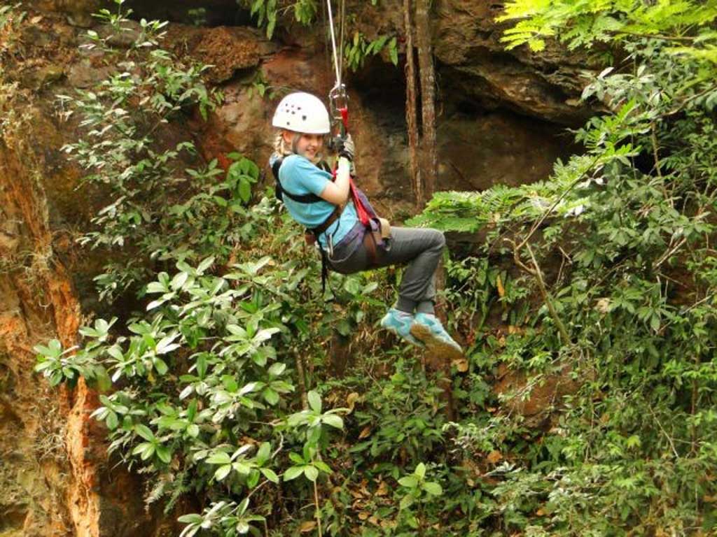 A short while later, strapped into harness and helmet and slightly regretting my immense breakfast, I find myself standing on a narrow platform overlooking a forested gorge. A steel cable arcs down through the trees to some invisible point on the other side. Now seems the last chance to voice my fears were it not for the fact that my nine-year-old daughter is already clipped on ahead of me. The last thing I see as she launches into the void is her grin.