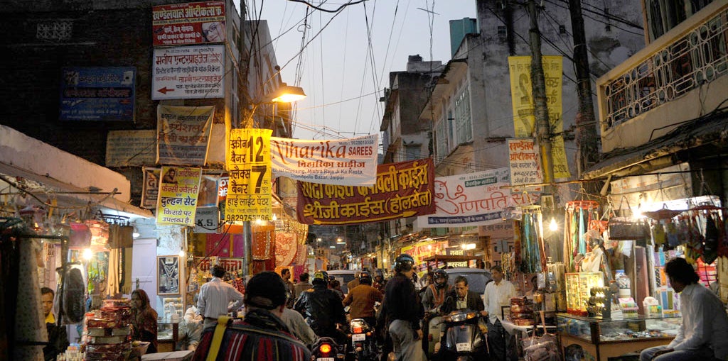 I arranged a local taxi (about Rs1,500/£20) through a souvenir shop in the village. We covered the 145km drive to Jaipur in about three hours, during which the boys were preoccupied by the semi-desert landscape of scrubby hills and a "roadscape" of fabulously painted lorries, overloaded bullock carts and the odd bus with passengers clinging to the roof.