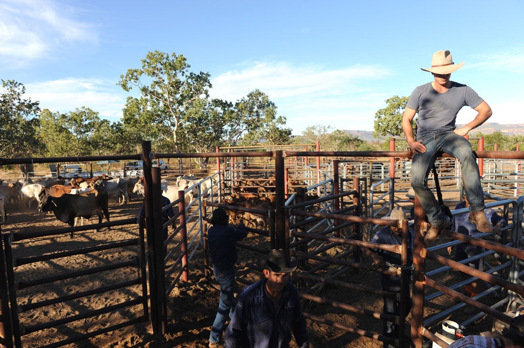 On the last leg of our drive we push the cattle along the purpose-built cattle route known as the Gibb River Road. Here, cattle are usually transported in huge trucks, instead of walking along the dusty, unsealed Gibb. We create a spectacular and unusual sight with our well-controlled herd set against the Cockburn Ranges and Pentecost River – the perfect Outback advertisement. A group of Gibb River tourists stop their 4x4s to take photos. We arrive back at the station covered in dust, yet intact. We'd also managed to pick up a few additional wild cows along the way.