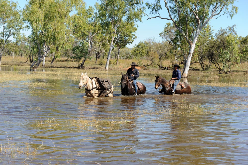 Some days are hard on the riders and testing for some of the horses. We learn essential droving skills as we negotiate uneven rocky country and three creek crossings. You never know how high the water is going to be until you get there; then there's the crocodile element to deal with too. We cross at low tide to avoid croc attacks, but the riverbed is full of deep sticky mud and at times it feels as if we are stuck in concrete and can't move. We push the herd through before high tide – because with the tide come the crocs. The animals struggle through the mud and on to harder ground.
