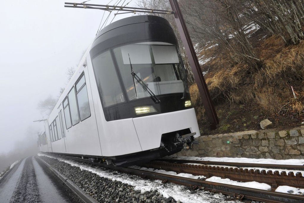 You don't, however, have to pay homage to the Puy de Dôme on foot. A new railway opened earlier this summer, taking passengers on a slow, scenic ride to the top. Back in the early 1900s, a train service chugged ladies and gentlemen up and down the volcano. Gradually superseded by the motor car, it was closed down in the 1920s. Thereafter the winding road to the summit became more clogged with traffic. Now, in a reverse process, rail has replaced road, partly for safety reasons, partly because of environmental concerns. It's a state-of-the-art cog rail, so rather than being pulled up as a funicular, the train has a central pinion wheel that meshes with a toothed rack rail. Cleverly, the braking of descending trains produces 50 per cent of the energy for ascending services operating at the same time.