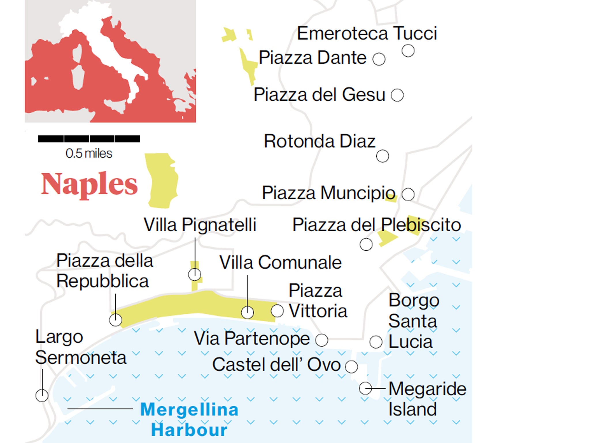 In 2012, Naples Mayor Luigi de Magistris opened a lungomare liberato (a waterfront "liberated" of traffic) and the experiment continues over this summer. And this weekend Naples hosts the Grande Partenza of the cycling purists' Grand Tour of choice, the Giro d'Italia, for only the second time. (The other was in 1963.) Wiggins, Cavendish and Nibali will be slugging it out for the Maglia Rosa (Pink Jersey) on a scenic 130km circuit that starts on the waterfront, the lungomare of Via Caracciolo.