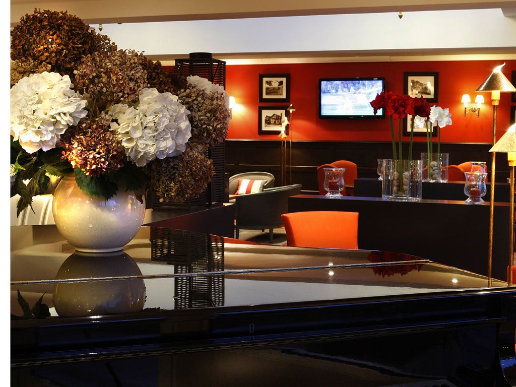 This being the Pays Basque, the seven stripes of the Basque provinces – three in France, four in Spain – feature prominently in the bar, restaurant and interlinked salons. The regional souvenir of choice is a cotton, striped tea towel in primary colours, but the hotel's approach to the motif is more restrained. Terracotta walls and red-tiled floors contrast with deep brown sofas and striped chairs in muted shades of beige and cream. Antique wooden furnishings, some of unknown purpose but all marked with the Basque cross, potted orchids and vases of cut hydrangeas create a relaxed and homely ambience.