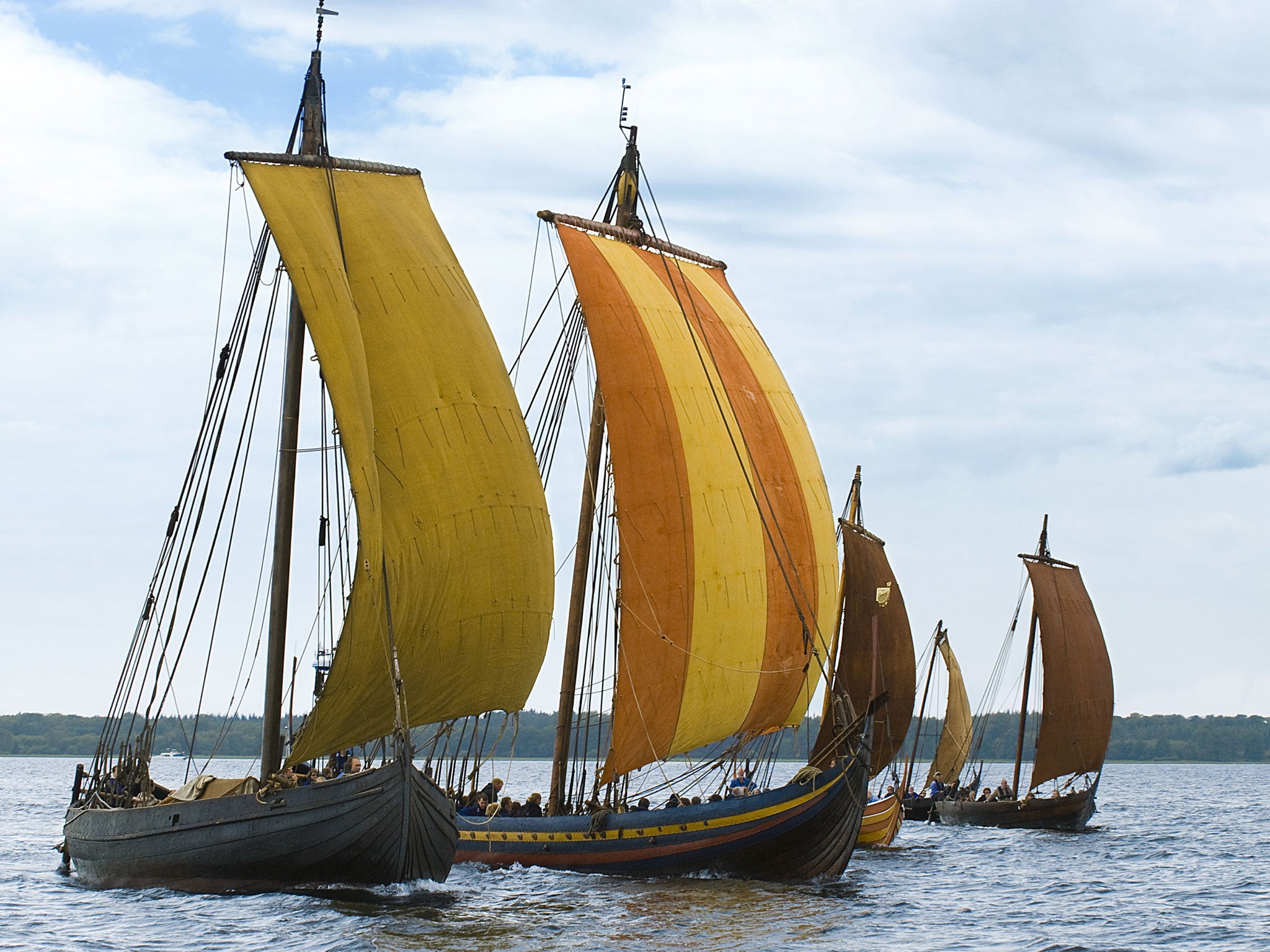 To learn more about these boats, I drive to the Viking Ship Museum at Roskilde. It’s a pretty waterside town on a fjord, where five craft were lifted from the mud in 1962. They had been scuttled as defences across the fjord in the 11th century. Some were sleek warships, others fatter cargo boats. One was built in Ireland. Today they lie next to each other like a fleet of ghosts in the hushed museum building. But their curves are built for speed and waves, their sweeping prows are taller than a man.
