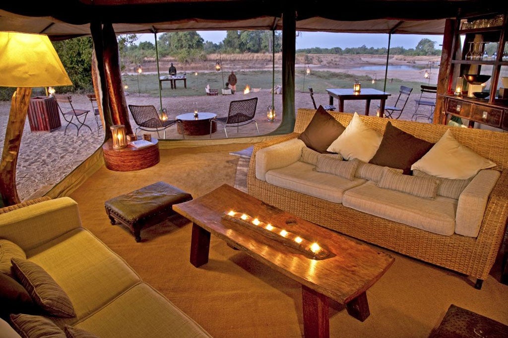 There are four spacious tented rooms. Inside are wooden framed beds, campaign-style furniture and en-suite facilities including an outdoor bucket shower. (Its name belies its relative sophistication.) Outside the front of the tent is a second washing area in traditional safari style, with a copper jug and basin filled by your kapaso, your room attendant named after the protectors of the Zambian clan chiefs. A patio and loungers overlook the river for lazy afternoons. At night, don't be surprised to hear hippos munching outside your tent.