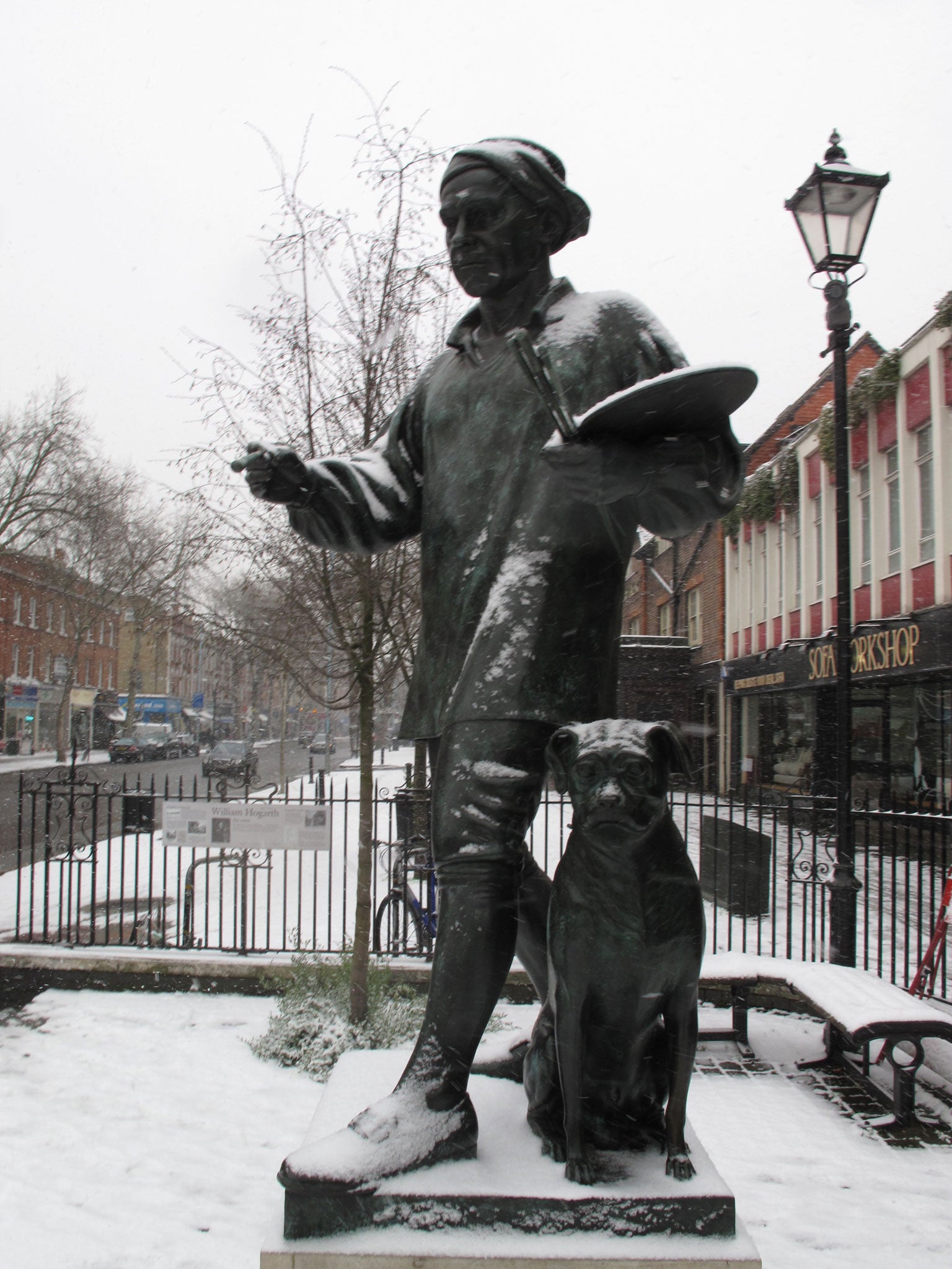 Chiswick has always stood astride the radial route west from London towards Bath and Bristol. Thankfully the main A4 has been diverted south of the village, and these days the High Road is much more a high street. A life-size statue of the painter William Hogarth, the local cultural hero (complete with easal and faithful dog) stands outside Barclays Bank. The High Road has all the usual retail suspects plus some independent stores and a scattering of market stalls.
