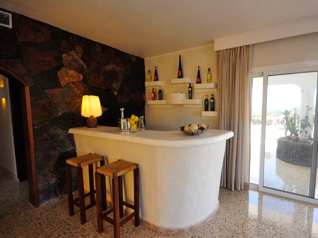 El Nido is a three-bedroom, three-bathroom house at the upmarket Puerto Calero marina. The villa was built in 1978 by fans of Lanzarote's favourite son, the artist César Manrique, and Heidi has worked with the current owners to bring out the glory of the Seventies styling. They've buffed up the sparkly polished granite flooring that flows through most of the property (check out the lino in the larder – Orla Kiely would die for this design). The bathrooms may have been necessarily updated for guests' comfort, yet in the living room the wall, clad with multicoloured lava rock from the national park, has been preserved. So, too, has the centrepiece of the property, a bar in "Manrique style", an adobe-like hulk of rough plaster finished in the shiny white paint that the artist manufactured commercially (you can buy it for about €200 a tin on the island). Other Seventies references include rush placemats on the dining table, a suite of wicker chairs, and, the most glorious touch, a table topped in floral orange tiles with a central leg made of rocks from Manrique's birthplace, Famara, in the north-west of the island.