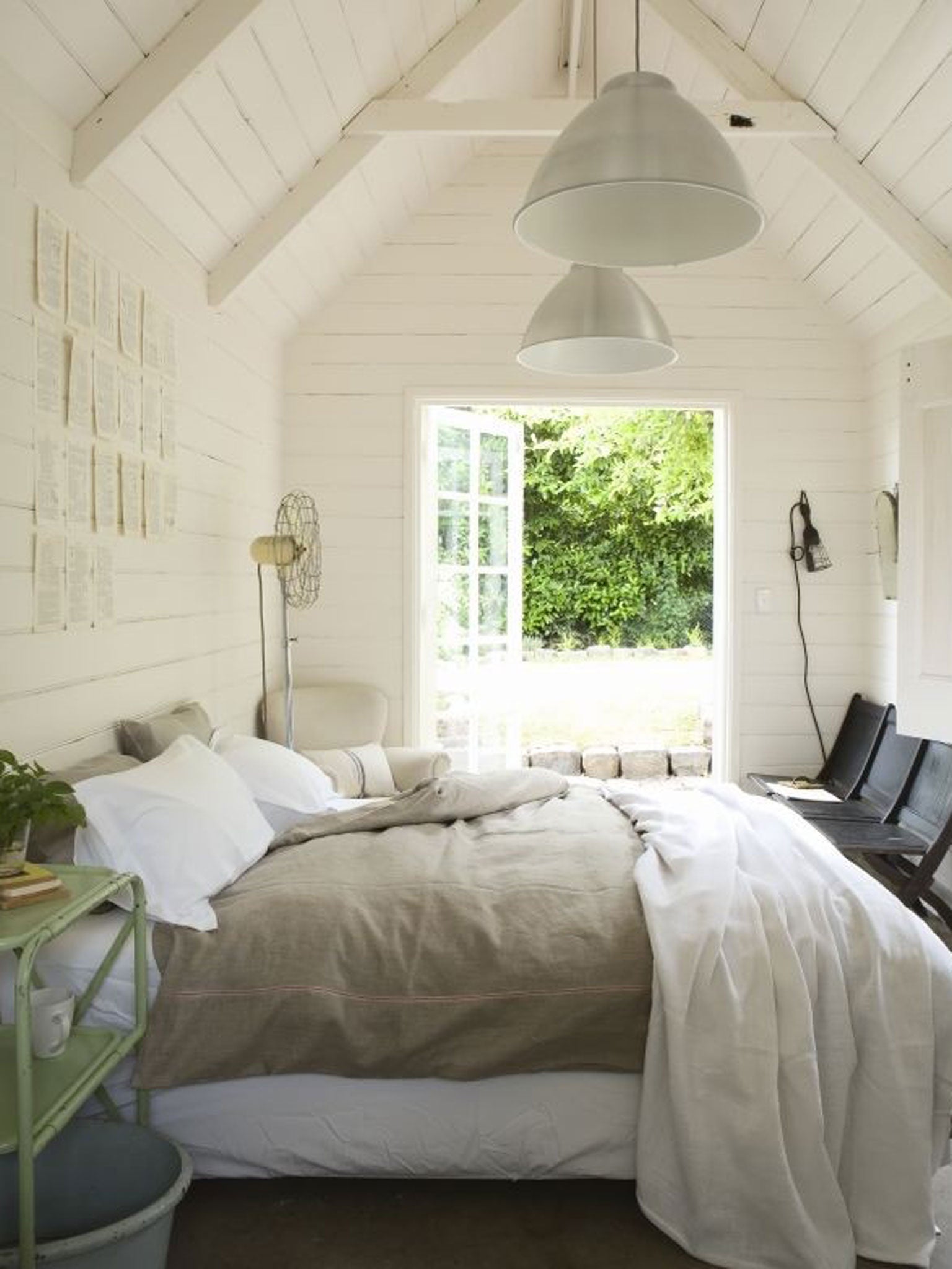 There are two double bedrooms at the front of the house, each with bespoke bedding and feature fireplaces, plus a third, light-filled double with an en suite in the pimped-up garden shed. All three rooms are styled to feel unique. Free-standing, claw-foot tubs take centre stage in both the main bathroom and outhouse en suite.