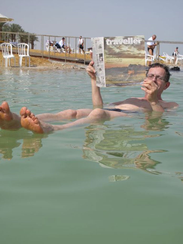 Whatever your body mass, the concentration of minerals will support you (and, if you believe the hype, restore you) as you drift with unholy ease around this corner of the Holy Land. Careful how you go: swimming as practised in the local baths, where the worst that can afflict you is a splash of chlorine, is unwise: the hyper-buoyancy does strange things to your aquatic posture, which can tip up unexpectedly. Swallowing even a spoonful of the stuff will put you off salt for weeks. And a bead or two of Dead Sea water in an eye stings bitterly.