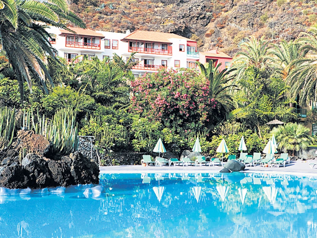 The rooms here – comfortable rather than stylish – each come with a balcony and have tiny kitchens for those intent on self-catering. Alternatively, copious buffet dinners are offered in the long dining room, or under the shade of a huge rubber tree (ficus elastica according to one of the handy botanical plaques), with views of the salt-water swimming pool. The pink and yellow buildings are pleasantly low-rise and low-key, the staff enormously friendly and obliging – and the clientèle is made up almost exclusively of German hikers.