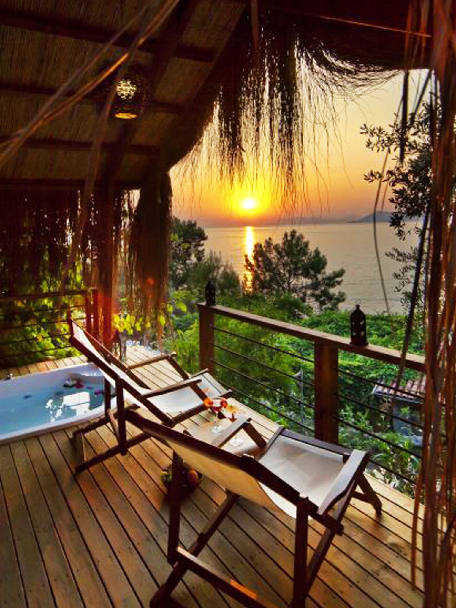 Though this camp is only a half-hour drive from the package-holiday hotspot of Oludeniz, it couldn't feel more apart. Opened in May on a secluded cove, with endless views of the Mediterranean, it hides eight safari-style tents with drawback canvas fronts and private balconies, strewn with deckchairs and a Jacuzzi. Inside, they exude a resoundingly restful feel with plump double beds and plush bathrooms. An infinity pool and open-air restaurant add the final flourishes.