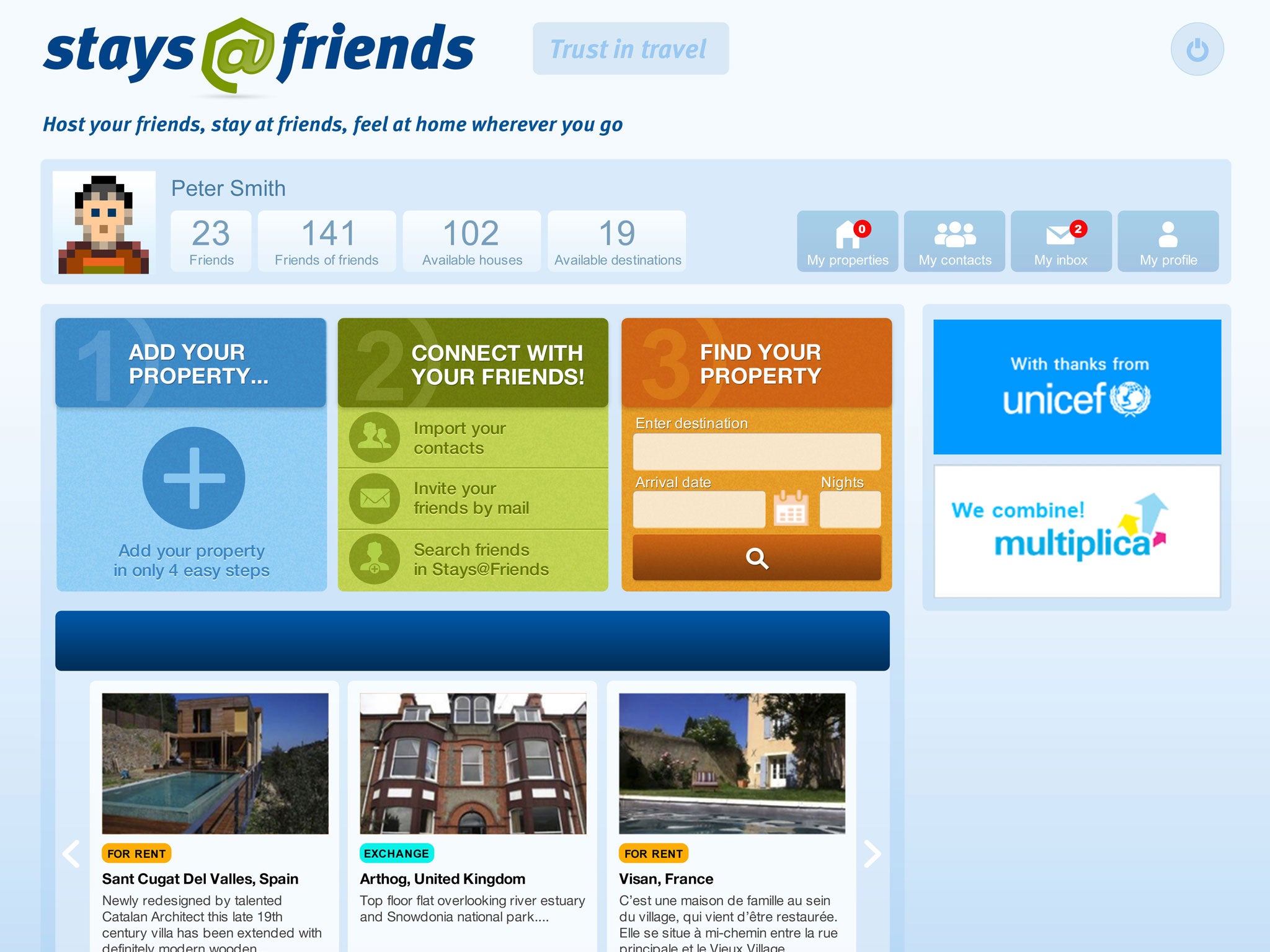 StaysAtFriends.com is a new community-based holiday accommodation website.Spare beds, rooms or properties are offered online, but only between friends, or friends-of-friends.