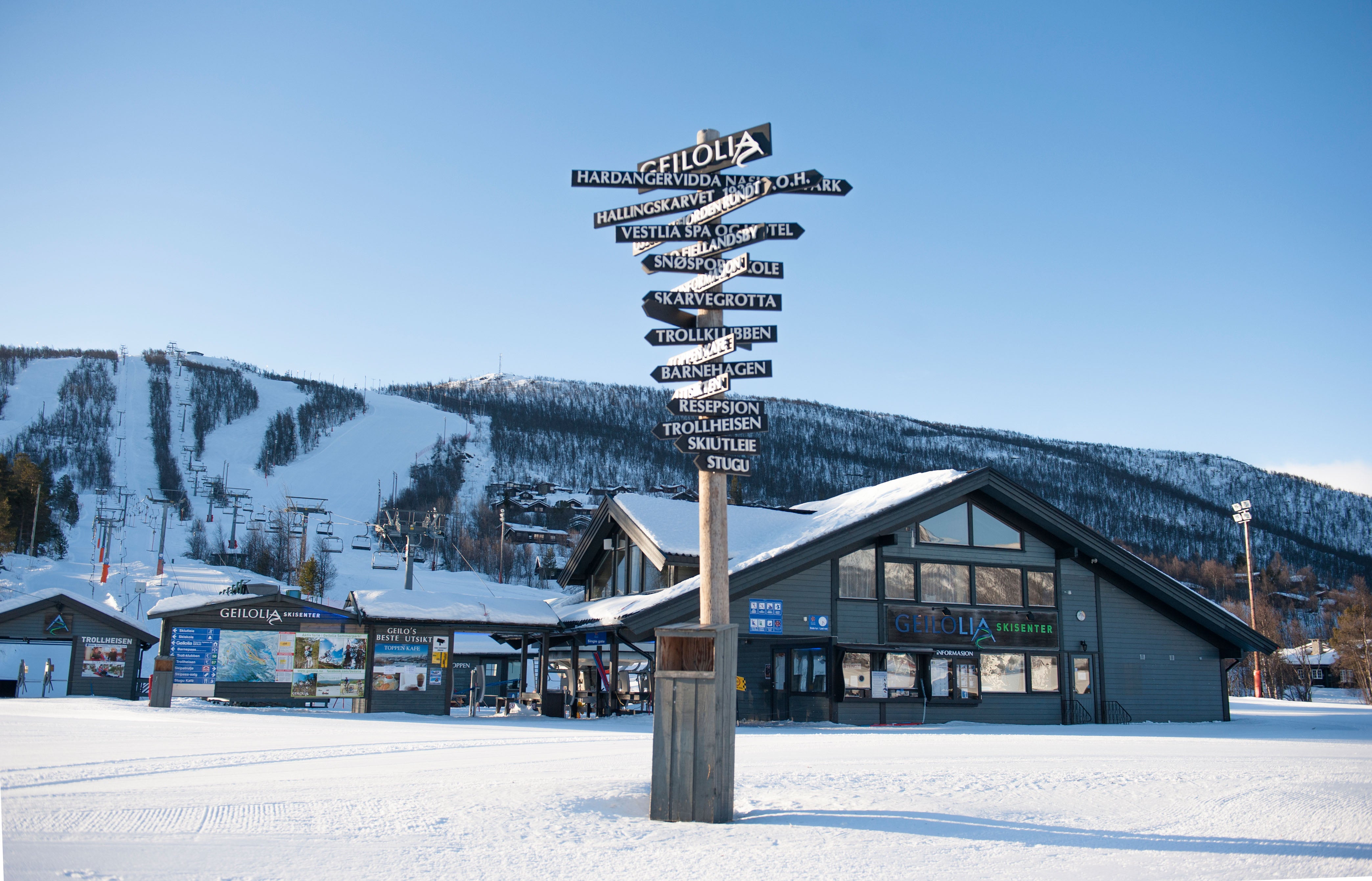 Geilo is one of Norway’s larger resorts, with 34km of fairly easy slopes rising on either side of the town, the two areas linked by ski bus.