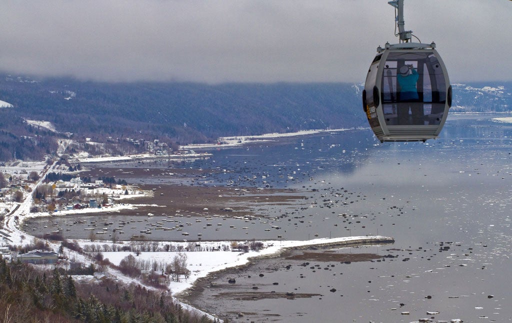If you know what London's Northern Line Tube is like in the rush hour, imagine the opposite: that's the Le Massif ski-train experience. The carriages are light filled and spacious, with high, almost church-like ceilings – they were once double-deckers, used on Chicago commuter lines. Everybody is happy to be on the train, so the atmosphere is convivial. And instead of just a dark tunnel, the view from the windows is of a spectacular winter landscape, the great river, a handful of local attractions and – amazingly – people smiling and waving at the train as if we had all been transported back to the early 1950s.